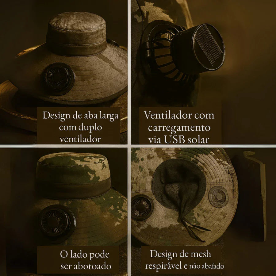Chapéu de Sol com Ventilador Solar – Refresque-se com Estilo e Proteção em Qualquer Lugar!
