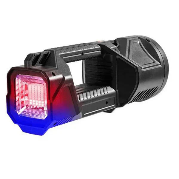 Luz principal: Lanterna super brilhanteLuz lateral: Lanterna de inundação e função de flash de luz de alarme (vermelho e azul)Alça ergonômica conveniente para que você sinta que é fácil de segurar.